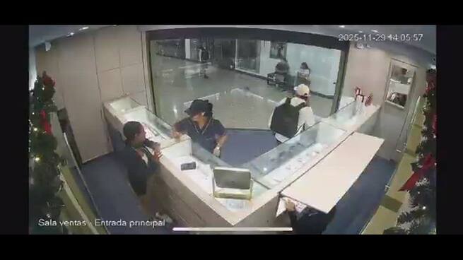 Imágenes captadas por cámaras de seguridad reveladas por las autoridades muestran con crudeza lo ocurrido al interior de la Joyería Caracas. En el video se observa cómo, al advertir la presencia policial, estalla una balacera que dejó al uniformado muerto, un delincuente abatido y varios capturados.