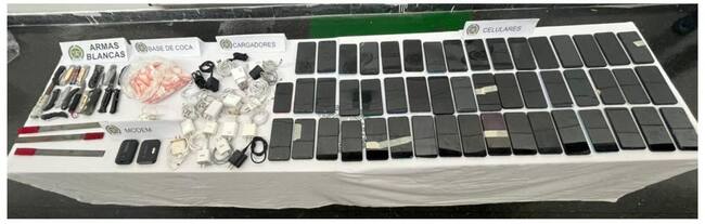 El procedimiento se llevó a cabo en el patio 2, zona compuesta por 57 celdas y con una población de alrededor de 785 personas privadas de la libertad. En el registro fueron confiscados 50 celulares, 20 cargadores, dos módems, cerca de 100 gramos de sustancias ilícitas y 20 armas blancas de fabricación artesanal, elementos que, de acuerdo con los investigadores, facilitaban la comisión de estas conductas.