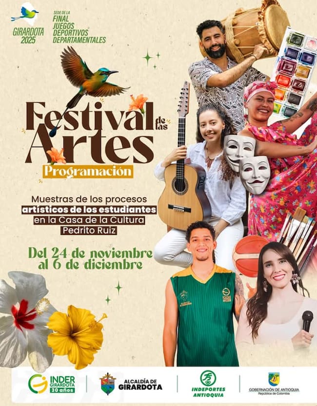 Continúa la programación de la segunda edición del Festival de Artes, organizado por la Casa de la Cultura de Girardota Pedrito Ruiz, que a su vez se articula con el INDER y la final de los Juegos Deportivos Departamentales 2025. Este año, con inicio el pasado 24 de noviembre, el municipio celebró la creatividad de estudiantes que culminaron sus procesos formativos en las artes.