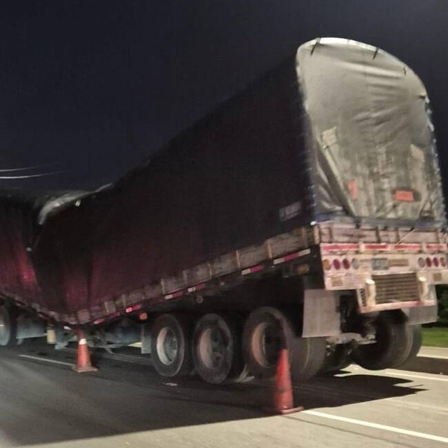 Tractocamión con material de Indumil quedo en medio de la autopista norte