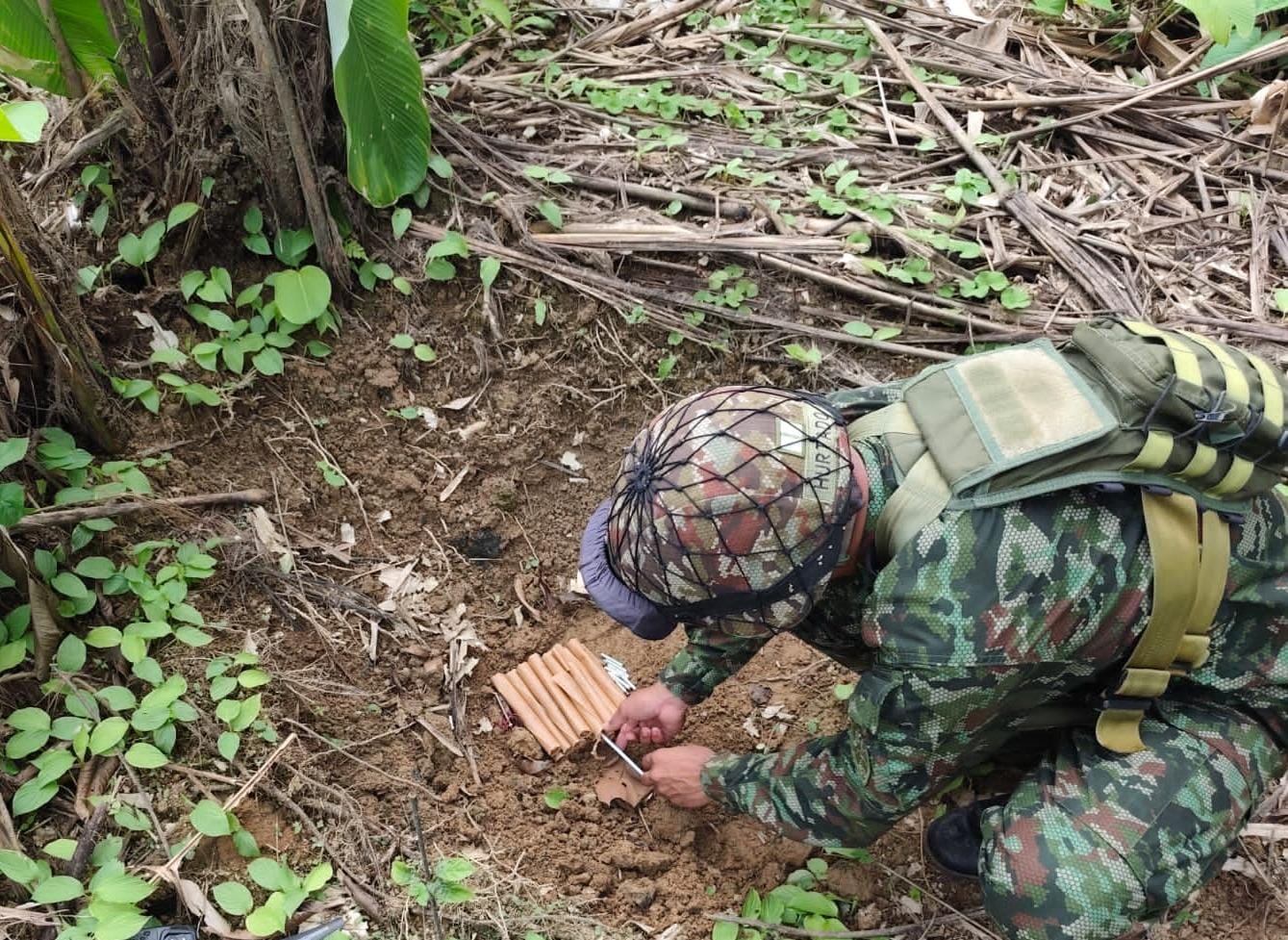 Tropas del Batallón de Selva N.° 53, orgánicas de la Fuerza de Tarea Hércules, localizaron un depósito ilegal de explosivos perteneciente al grupo armado organizado residual (GAO-r) Coordinadora Nacional Ejército Bolivariano, estructura Iván Ríos.