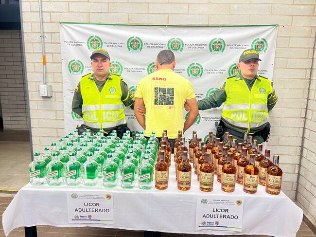 Un hombre fue capturado por transportar licor adulterado en Santo Domingo. Foto: Policía Antioquia.