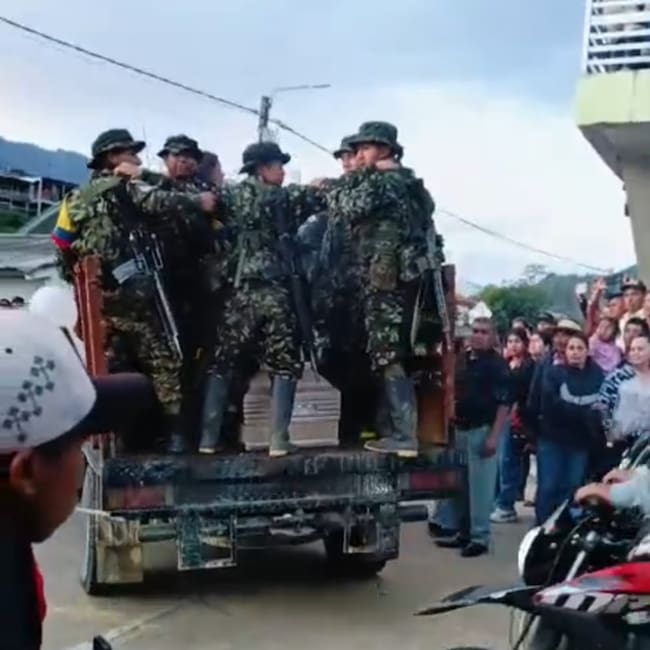 En el corregimiento de Río Negro, zona limítrofe entre Huila y Cauca, se difundió un video donde aparecen miembros del bloque Central Ismael Ruiz junto a civiles en una extensa caravana de motos y vehículos. Las imágenes corresponden al sepelio de alias El “Flaco”, señalado como cabecilla del frente y presunto responsable del reciente hostigamiento a la estación de policía de Tesalia. Durante el recorrido, varios hombres armados realizaron múltiples disparos al aire con armas cortas y largas. La comunidad aseguró que muchos de los asistentes habrían sido obligados a participar en la actividad.