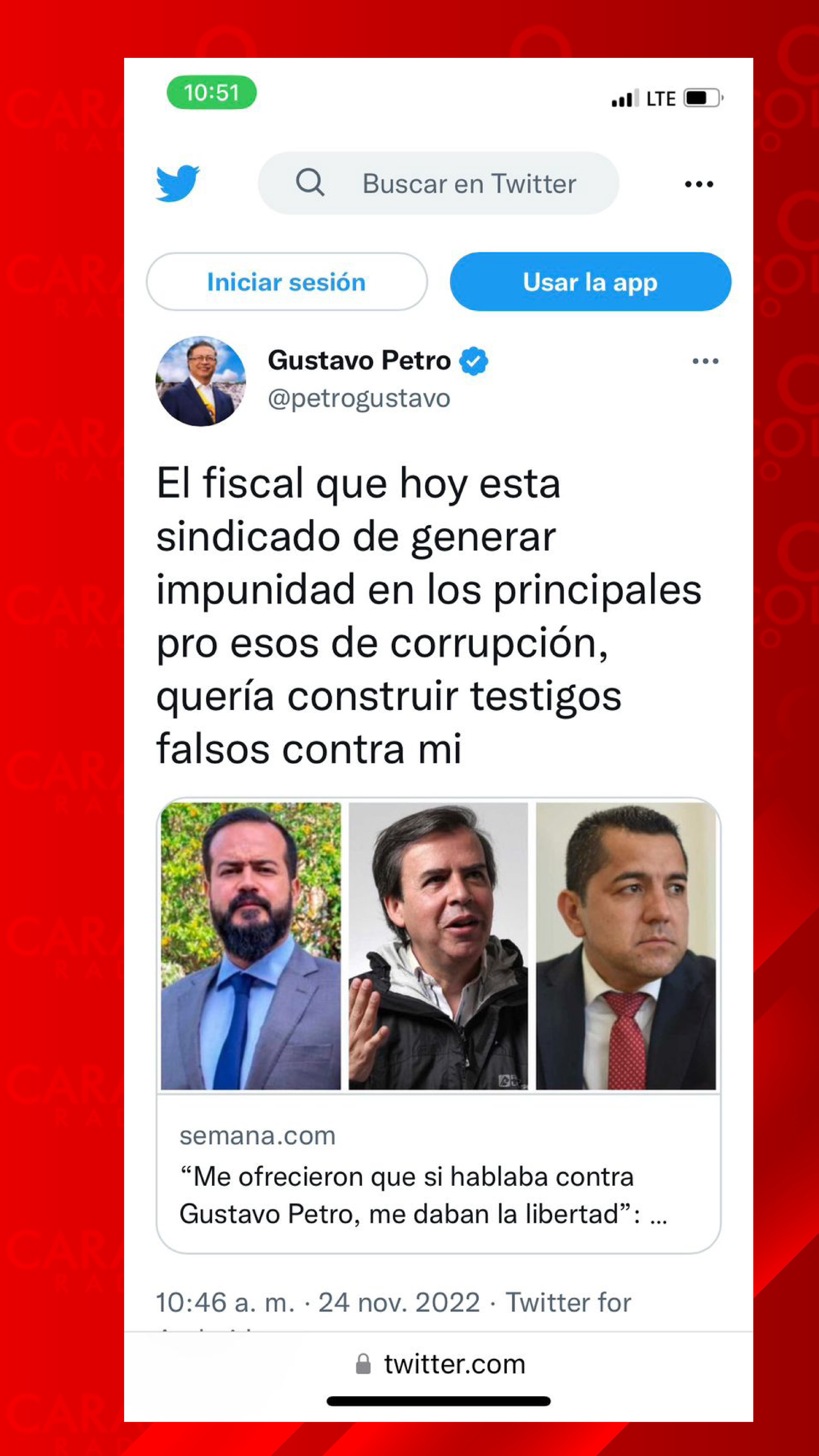 En noviembre de 2022, el presidente Petro acusó al fiscal Daniel Hernández de generar impunidad en los principales procesos de corrupción, y afirmó que el fiscal quería construir testigos falsos en su contra, situación que la Fiscalía ya comprobó que no es cierta.