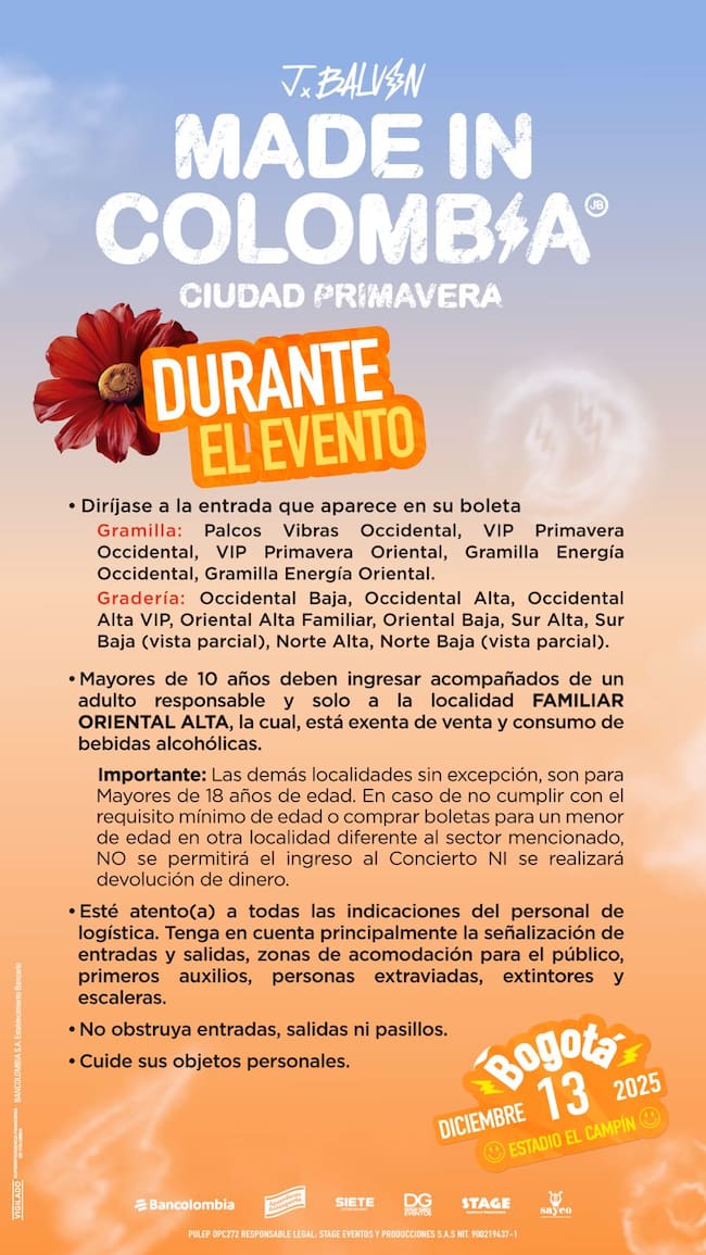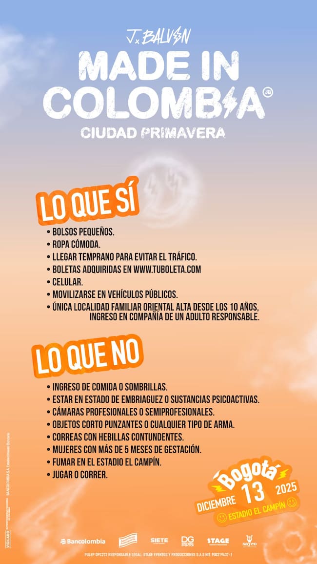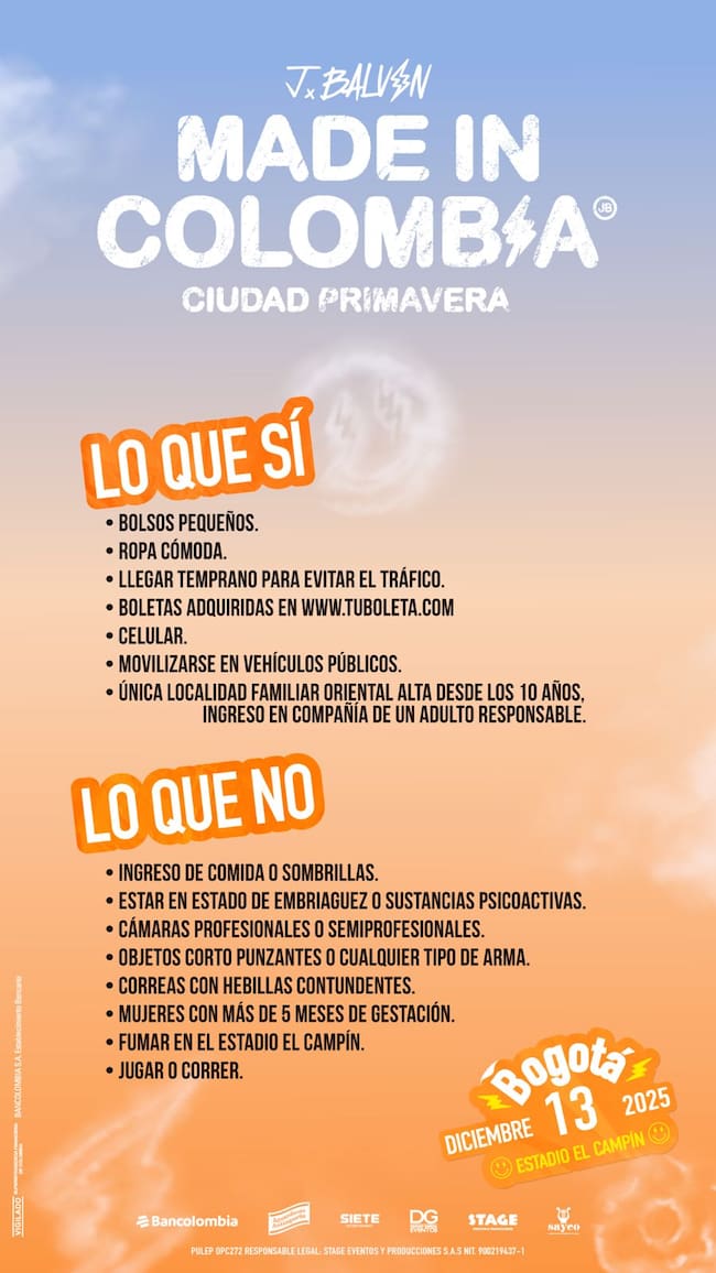 Recomendaciones generales para el concierto de J Balvin en Bogotá: