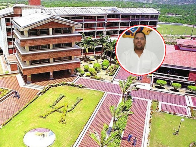 Instalaciones de la Universidad del Atlántico y en el círculo el candidato Leyton Barrios.