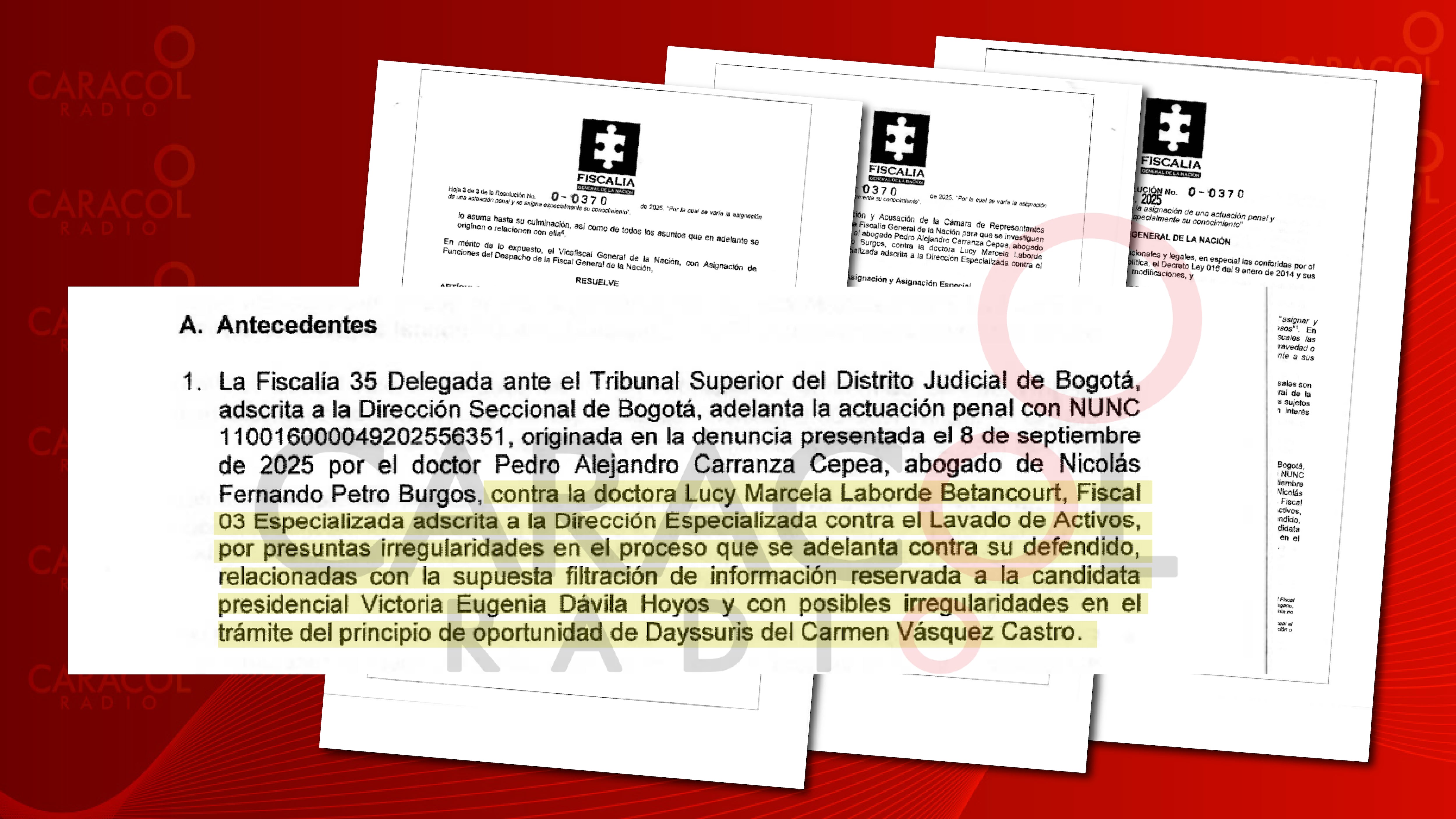 La resolución que asigna de manera especial la investigación contra la fiscal del caso Nicolás Petro
