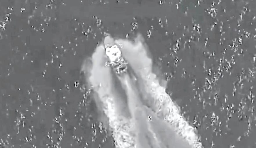 La publicación en redes del Comando Sur incluye imágenes de video de tres botes separados flotando en el agua antes de que cada uno sea alcanzado por los ataques.
