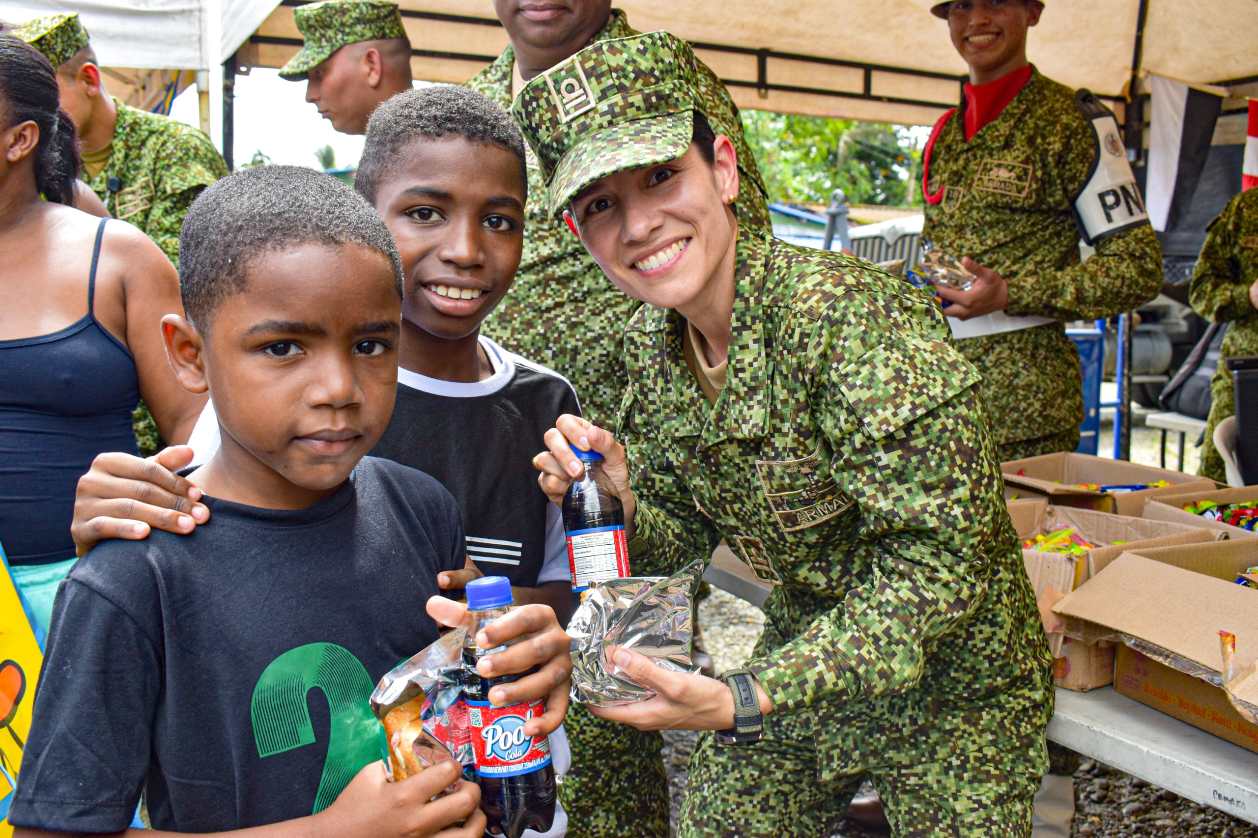 La jornada fue posible gracias a la solidaridad de Pepe Ganga, que donó los 1.200 juguetes, y al trabajo articulado con Soluciones W y la Armada Nacional, que lideró toda la logística y el acompañamiento en cabeza del coronel Ricardo Visbal, comandante de la Segunda Brigada de Infantería de Marina de la Fuerza Naval del Pacífico.