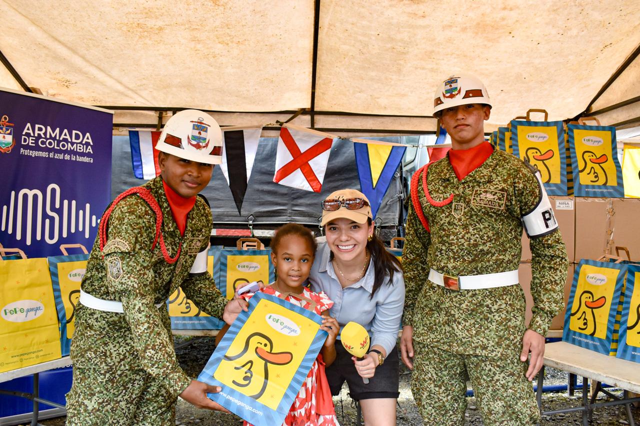 La jornada fue posible gracias a la solidaridad de Pepe Ganga, que donó los 1.200 juguetes, y al trabajo articulado con Soluciones W y la Armada Nacional, que lideró toda la logística y el acompañamiento en cabeza del coronel Ricardo Visbal, comandante de la Segunda Brigada de Infantería de Marina de la Fuerza Naval del Pacífico.