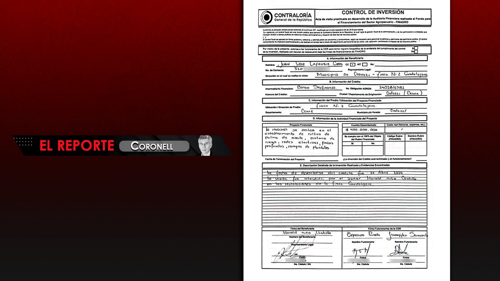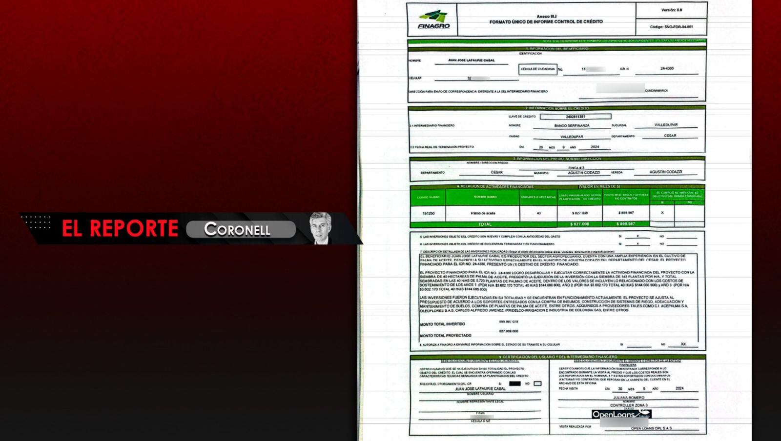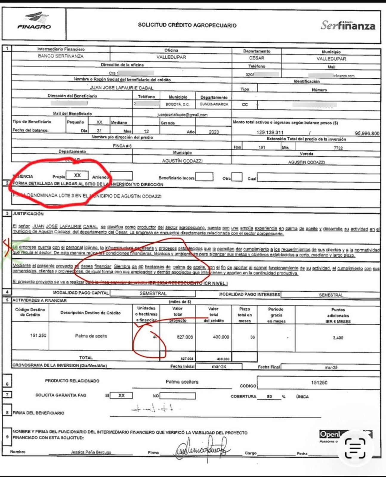 Aquí surge otra inconsistencia. El crédito fue solicitado para invertir en la finca 3 de Guadalajara y no en la 2 que fue la inspeccionada, según el acta. Ustedes pueden ver el formulario de Finagro aquí: