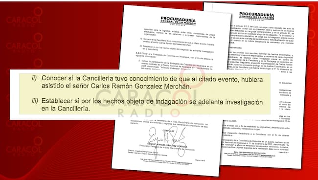 La Procuraduría busca determinar si la Cancillería tuvo o no conocimiento de la asistencia de Carlos Ramón González, también se pregunta si la Cancillería abrió o no una indagación interna.