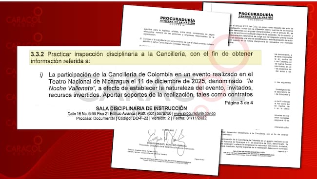Caracol Radio conoció que la Procuraduría ordenó inspección a la Cancillería por parranda vallenata con Carlos Ramón González. El auto que ordena la investigación busca determinar si hubo o no complicidad de funcionarios del gobierno en la embajada en Nicaragua.