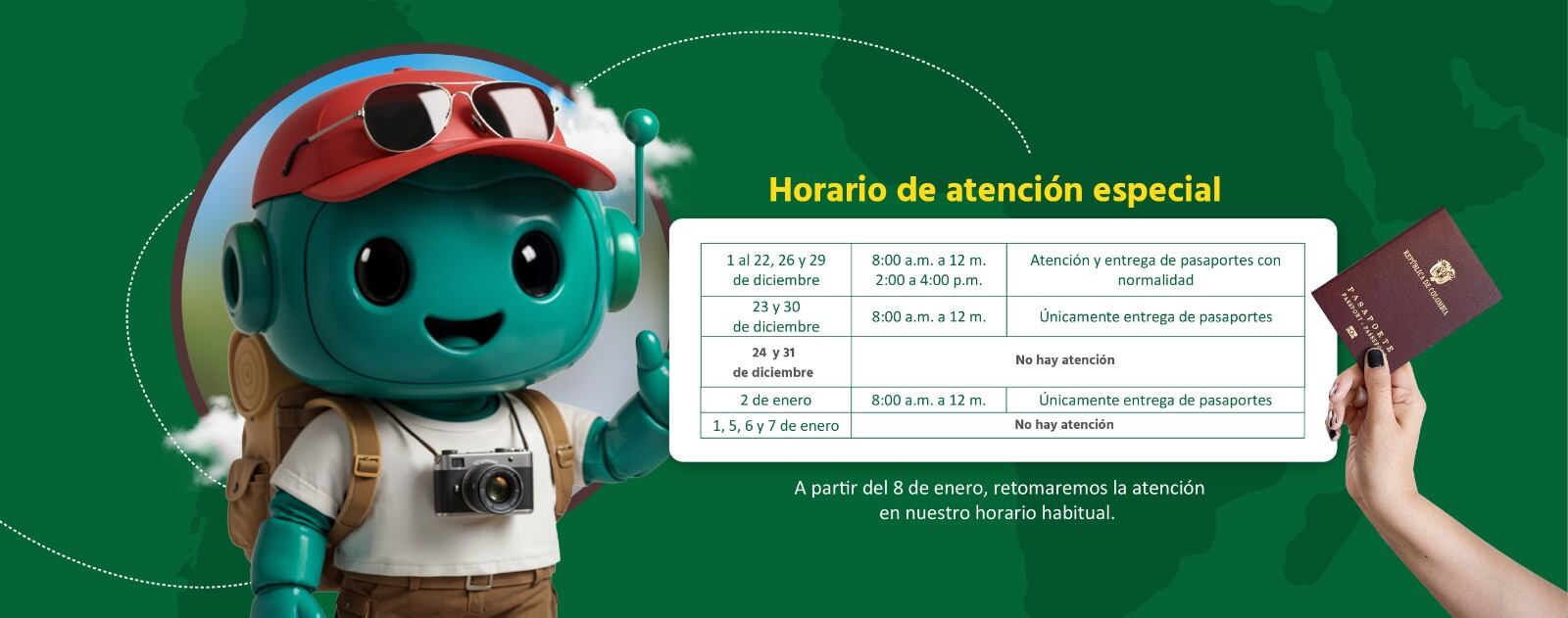 Asimismo, indicó que no habrá atención al público los días 24 y 31 de diciembre, ni durante la temporada de carnavales entre el 5 y el 7 de enero de 2026, debido a la declaratoria de días cívicos. En las demás fechas, el servicio se prestará en el horario habitual.