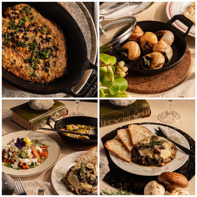 La carta conserva los platos más representativos de Medellín, como la salsa Café de París, el queso brie al horno, el rotie de alioli con papas de la casa y una selección de postres que ya son parte de la identidad del lugar. La oferta se complementa con una curada carta de vinos y cócteles.