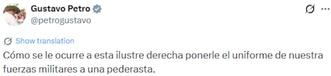 “Cómo se le ocurre a esta ilustre derecha ponerle el uniforme de nuestra fuerzas militares a una pederasta”, dijo el mandatario.