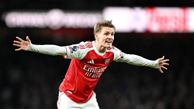 Martin Odegaard festeja su gol ante el Brighton. (Photo by Stuart MacFarlane/Arsenal FC via Getty Images) / Stuart MacFarlane