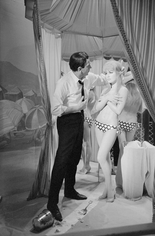 Brigitte Bardot y su entonces esposo, Roger Vadim en el set de la pelicula Et Dieu... crea la femme. (Foto: Getty ) / Bettmann