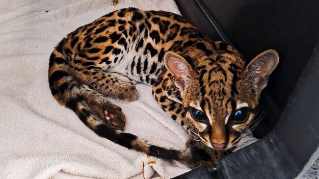 Un llamado oportuno de la comunidad en el municipio de Bello permitió rescatar a un felino silvestre que permanecía en cautiverio dentro de una vivienda y que, tras caer desde un tercer piso, terminó en el patio de una casa vecina.