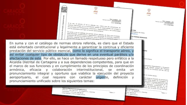 Un documento de la Agencia Nacional de Infraestructura (ANI) advierte que la alcaldía de Cartagena estaría poniendo en riesgo la oportunidad de consolidar esa ciudad como destino turístico y centro estratégico de desarrollo económico, por “trabas” a la modernización y ampliación del Aeropuerto.