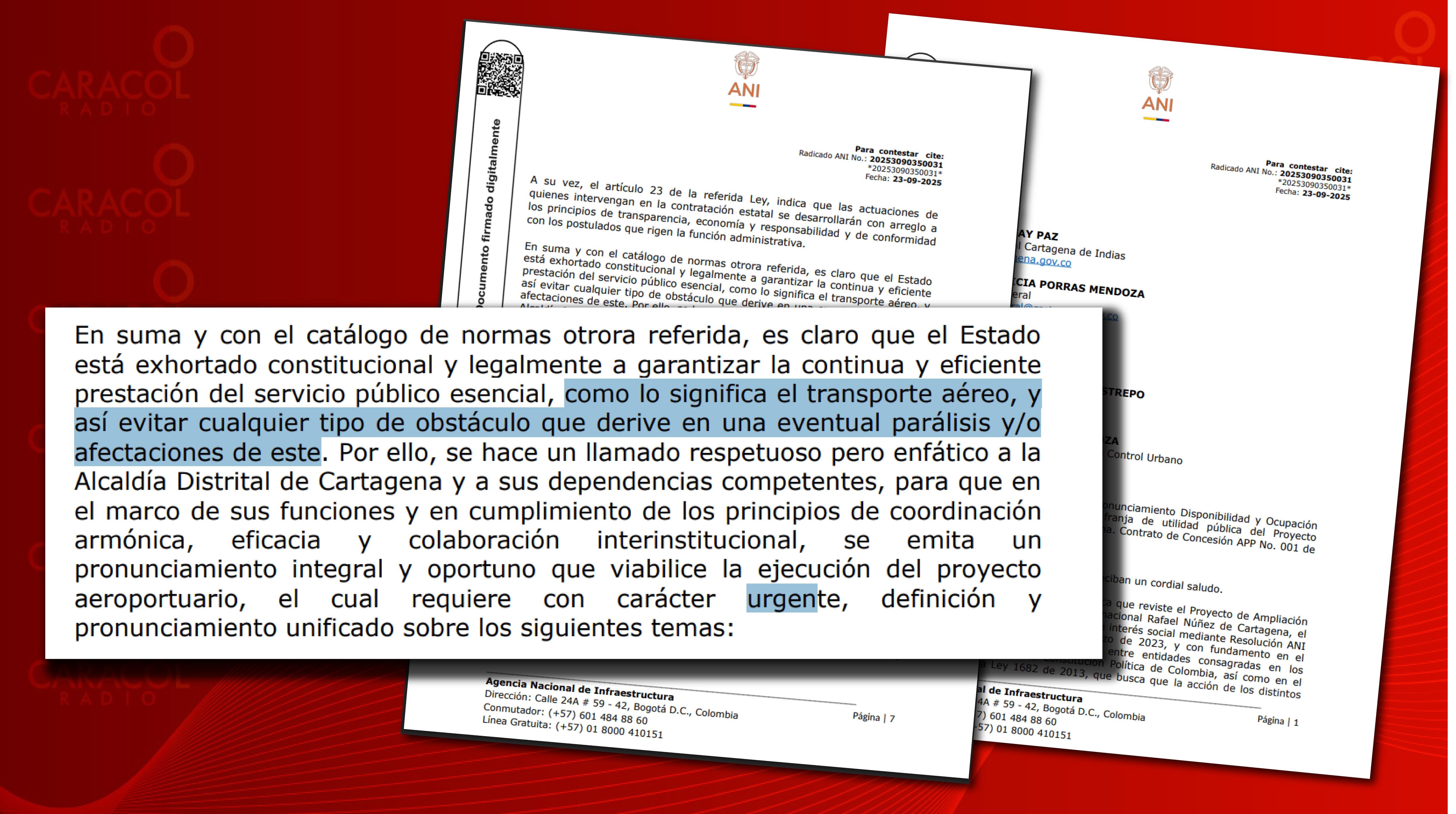 Un documento de la Agencia Nacional de Infraestructura (ANI) advierte que la alcaldía de Cartagena estaría poniendo en riesgo la oportunidad de consolidar esa ciudad como destino turístico y centro estratégico de desarrollo económico, por “trabas” a la modernización y ampliación del Aeropuerto.