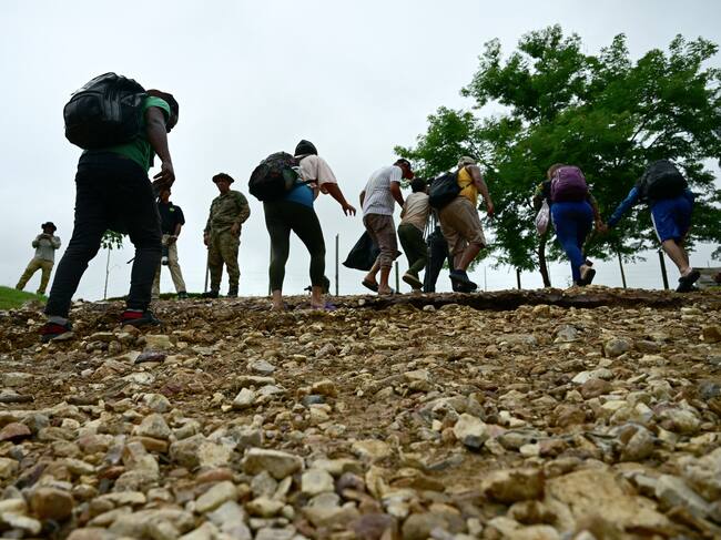 Migrantes llegan a un centro temporario en la selva del Darien. FOTO: MARTIN BERNETTI/AFP via Getty Images / MARTIN BERNETTI