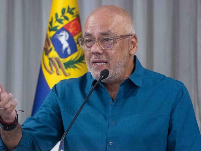 AME3951. CARACAS (VENEZUELA), 22/07/2024.- El jefe del comando de campaña del mandatario Nicolás Maduro, Jorge Rodríguez, habla durante una rueda de prensa este lunes, en Caracas (Venezuela). El comando de campaña del chavismo acusó este lunes al candidato presidencial de la principal coalición opositora, Edmundo González Urrutia, de planear "la destrucción de Venezuela" a través de su programa de Gobierno, de cara a las elecciones del próximo domingo. EFE/ Ronald Peña / RONALD PENA R