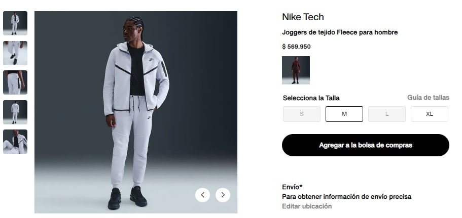 Eso quiere decir que, en pesos colombianos, la sudadera ronda cerca de los 570.000, se puede encontrar si la busca con la referencia: Nike Tech, Joggers de tejido Fleece para hombre.