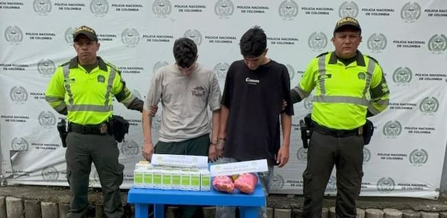 Los capturados, identificados como Jonathan Correa Henao y Michaell Orrego Agudelo, fueron puestos a disposición de la Fiscalía General de la Nación por el delito de tráfico, fabricación o porte de estupefacientes.