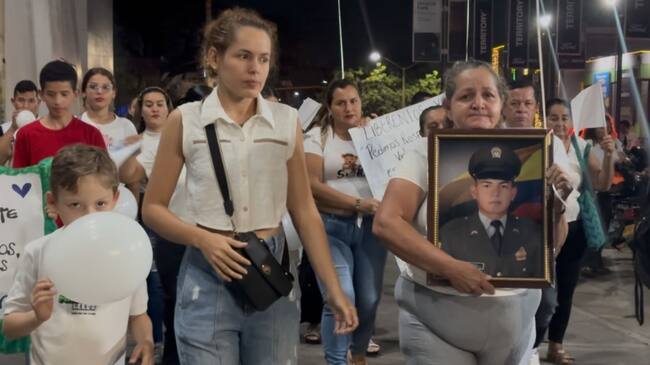 Los familiares también aprovecharon la velatón para pedir mayor atención del Gobierno Nacional frente a la situación de los policías y soldados secuestrados en la región.
