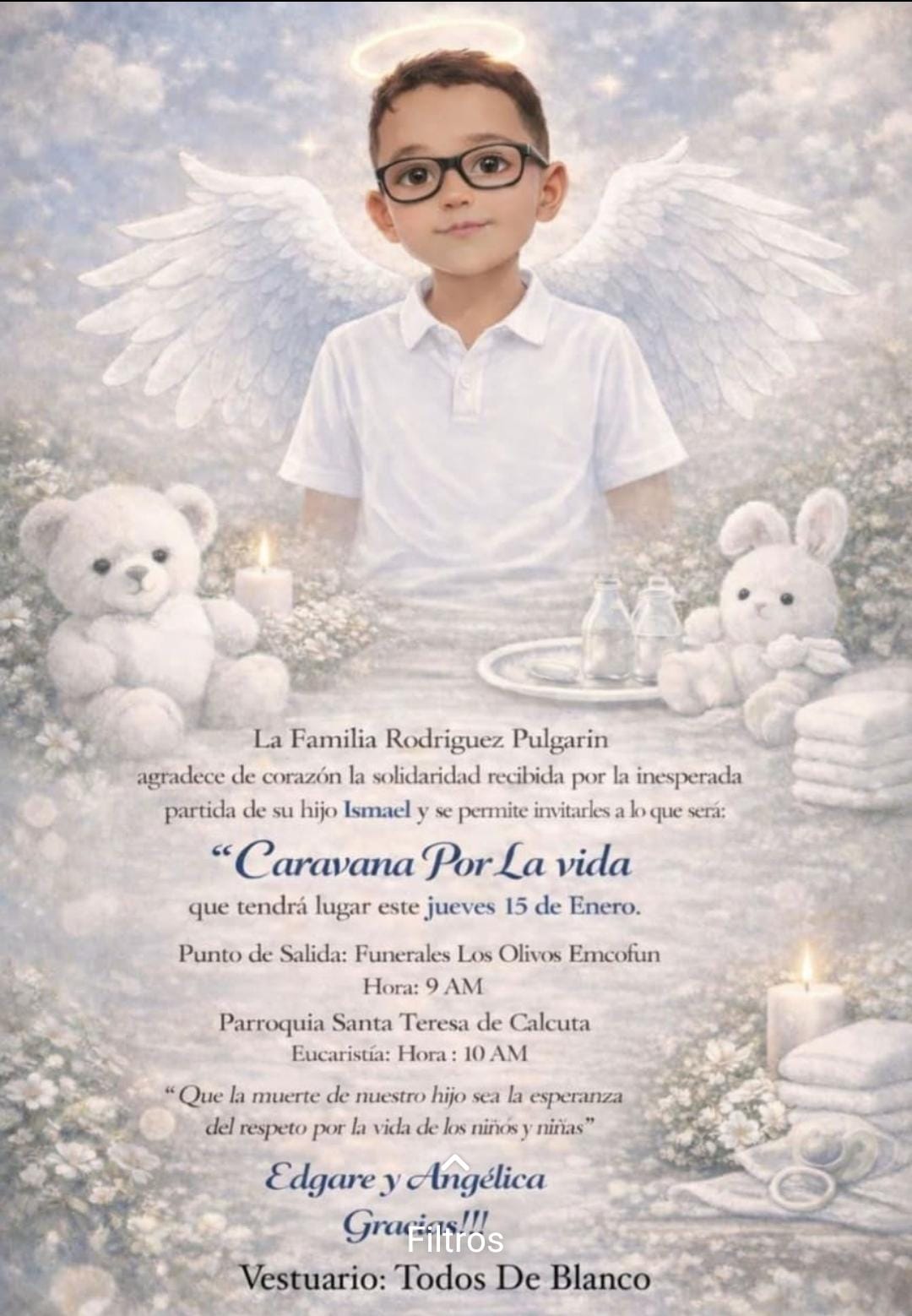 La familia solicitó que los asistentes vistan de blanco, como símbolo de paz y esperanza, y expresó que esperan que este homenaje sirva como un recordatorio del respeto por la vida de los niños y niñas.