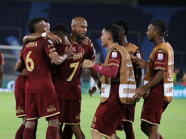 Los jugadores del Tolima festejan uno de sus goles ante el Junior / Colprensa.