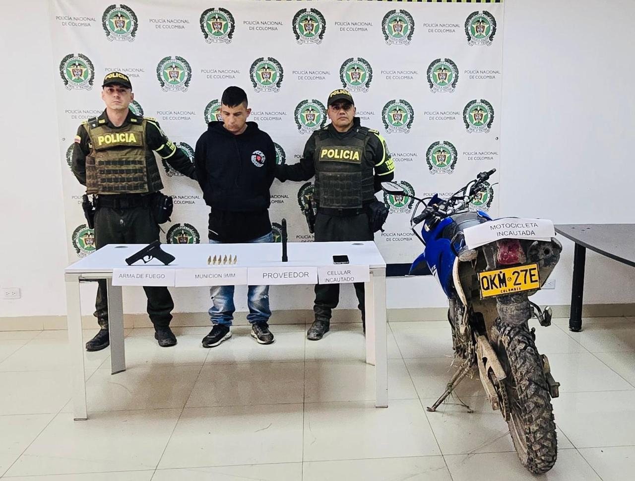 “Se le halla en su poder una pistola marca Glock, la cual está siendo verificada por nuestro equipo técnico balístico, sí, esta arma estaría involucrada en otros hechos delictivos en el los de municipios del norte del Valle. Asimismo, se le incauta un proveedor para la misma, 28 cartuchos 9 mm y una motocicleta que había sido hurtada en el mes de septiembre del 2025”.