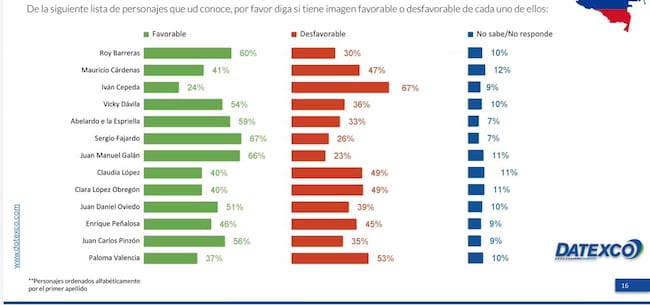 El sondeo de opinión realizado por Datexco se hizo con 1202 respondientes mediante una selección aleatoria de hogares, en donde se les preguntó a hombres y mujeres mayores de edad. En el sondeo participaron personas de los siguientes municipios: Bogotá, Medellín, Cali, Barranquilla, Cartagena, San José de Cúcuta, Bucaramanga, Ibagué, Villavicencio, Santa Marta, Pereira y Pasto.
