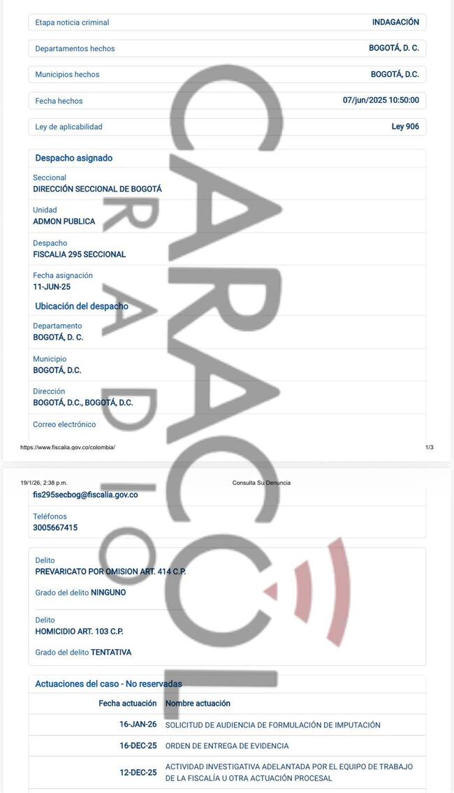 Caracol Radio también conoció que el pasado 16 de enero, un fiscal de Administración Pública de la Seccional de Bogotá radicó la solicitud de imputación contra Rodríguez.