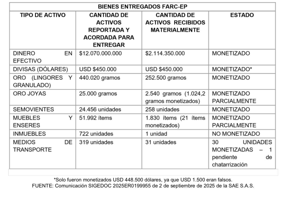 Y explicó: “Por ejemplo, ellos entregaron unos dólares, se comprometieron a entregar 450.000 dólares, de los cuales 1.500 dólares eran falsos. Es decir, que no solamente estamos viendo o la Contraloría pudo identificar que no solamente no entregaron los bienes y dineros a los cuales se comprometieron a entregar en el Acuerdo de Paz, sino que algunos de estos que se han entregado no van a poder ser monetizados”.