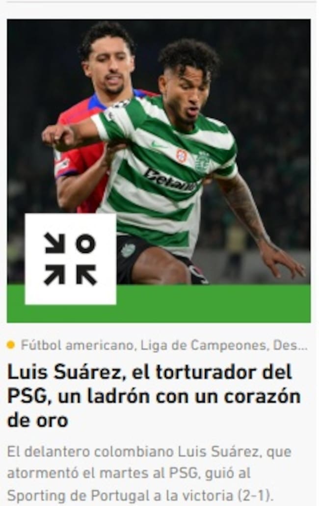 El diario A Bola, también de Portugal, dedicó una nota al colombiano, la cual tituló: “Suárez fue el principal ilusionista de la noche mágica”. “El delantero colombiano, con dos goles, grabó en la memoria del Sporting de Lisboa una fecha que pasará a la historia: 20 de enero de 2026″, añadieron.