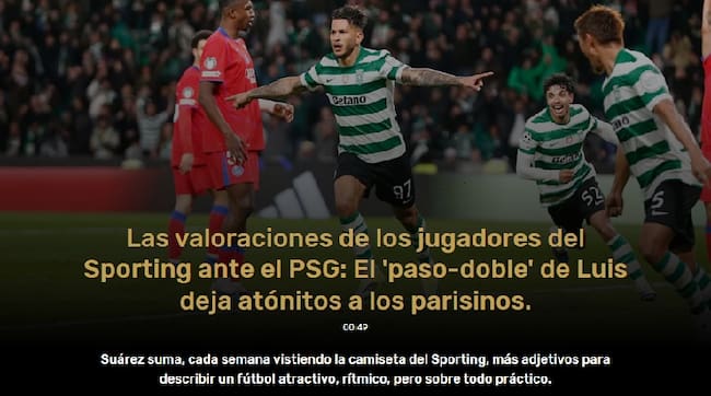 Record aseguró que Suárez hizo parte de “una de las noches más épicas”. No dudaron en ponerlo como la estrella del partido y agregaron: “Suárez suma, cada semana vistiendo la camiseta del Sporting, más adjetivos para describir un fútbol atractivo, rítmico, pero sobre todo práctico”.