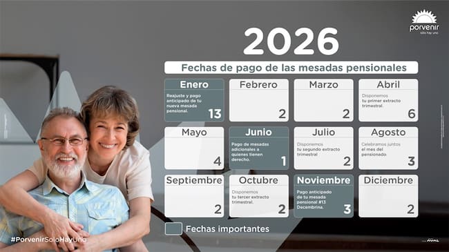 Para el 2026, Porvenir estableció el siguiente calendario de pago: