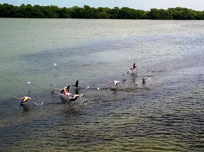 La llegada de más de 100 flamencos a la Ciénaga de la Virgen es un indicador positivo del proceso de recuperación ambiental que viene presentando este importante cuerpo de agua de la ciudad. Aunque, de acuerdo con el Establecimiento Público Ambiental (EPA), hace aproximadamente tres años se han registrado avistamientos de flamencos en distintos sectores de la ciénaga, en en esta ocasión se observa una mayor concentración de representantes de esta especie.