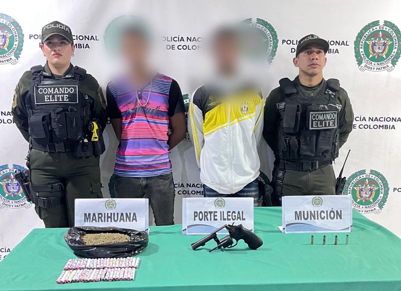 En el momento de la captura, se encontró en su poder un arma de fuego tipo revólver, municiones y 500 gramos de sustancias estupefacientes que, además de los capturados, fueron puestos a disposición de la Fiscalía.