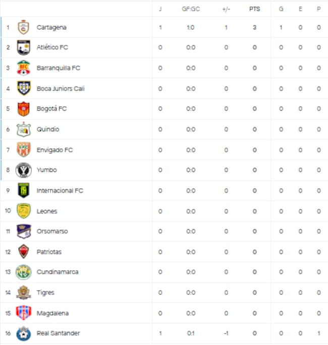Real Cartagena inicia el Ascenso con victoria sobre Real Santander: así va la tabla de posiciones / @RealCartagena
