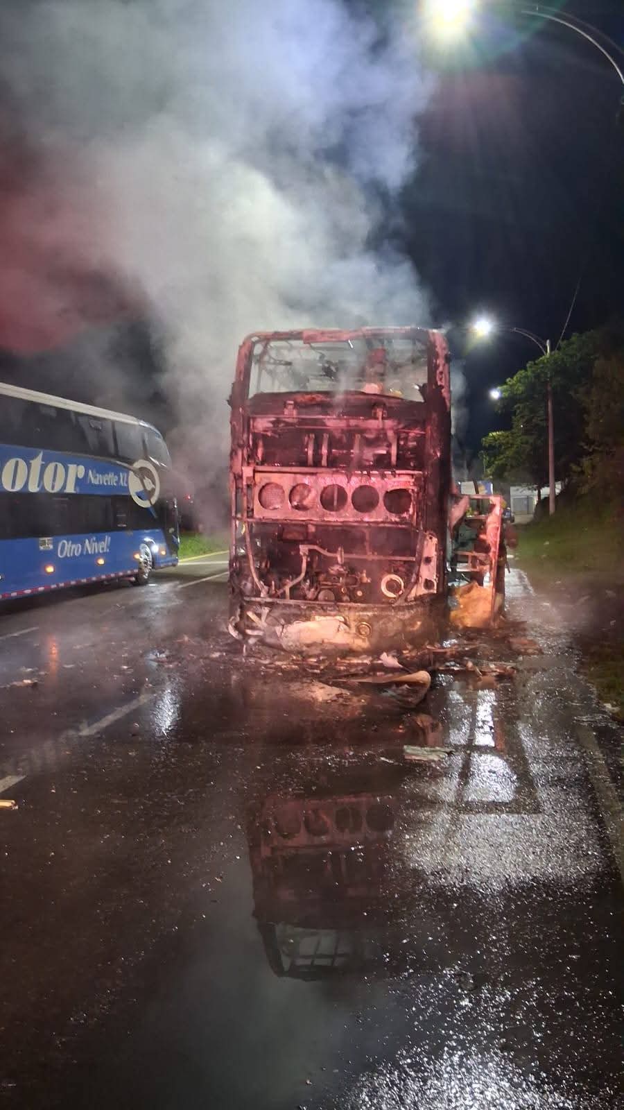 Momentos de pánico se registraron en la noche del domingo en el ingreso norte a Neiva, luego de que un bus de dos pisos de la empresa Coomotor se incendiara en inmediaciones del peaje norte, obligando a una evacuación de emergencia.