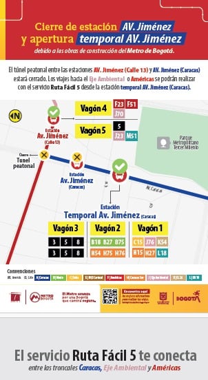 La estación temporal de la Avenida Jiménez tendrá servicios hacia la Autopista Norte, Suba, Eje Ambiental, Calle 26 y Américas.