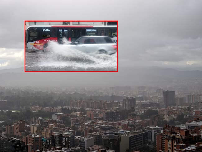 Panorámica de Bogotá y encharcamiento. Fotos: Getty Images / Caracol Radio