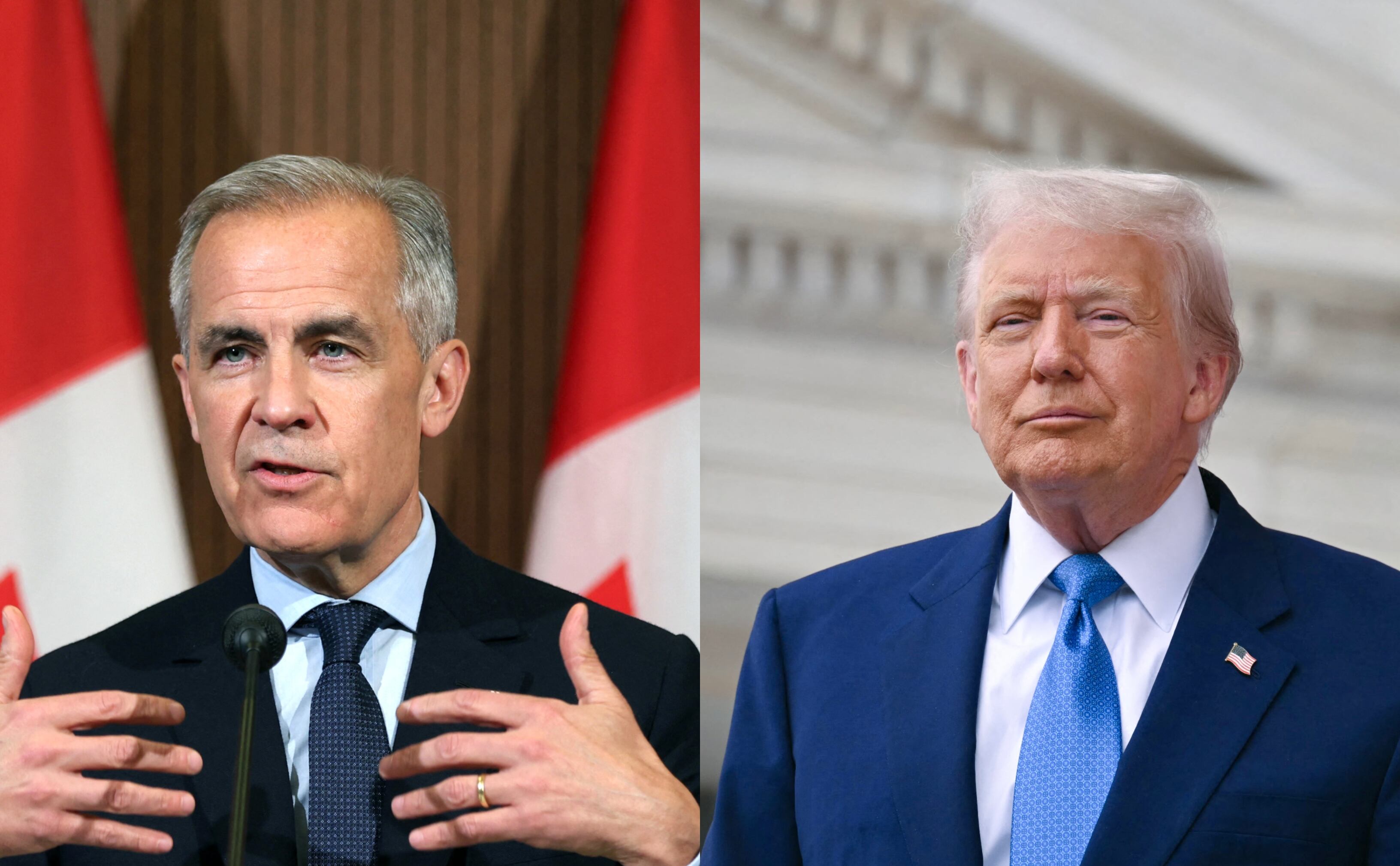 Primer ministro de Canadá, Mark Carney. FOTO: DAVE CHAN/AFP via Getty Images. //Presidente de Estados Unidos, Donald Trump. FOTO: SAUL LOEB/AFP via Getty Images