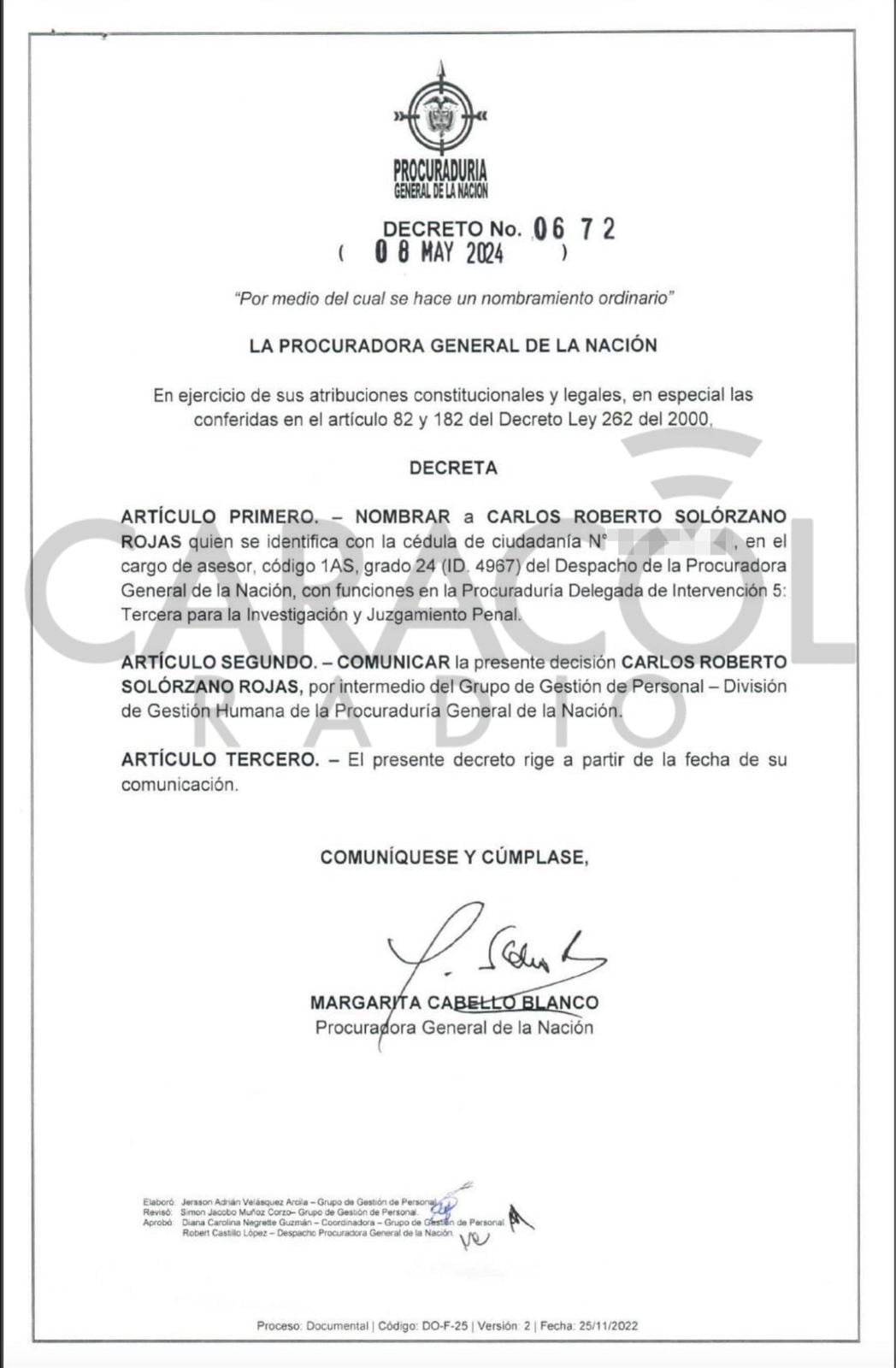 También les dijimos que el hijo del magistrado había sido nombrado en la Procuraduría General por Margarita Cabello Blanco y asignado como asesor del despacho de Bladimir Cuadro Crespo, el procurador que actuó en el caso Uribe, también por designación de la doctora Cabello y quien procedió durante el juicio como si fuera un asistente de la defensa del expresidente.