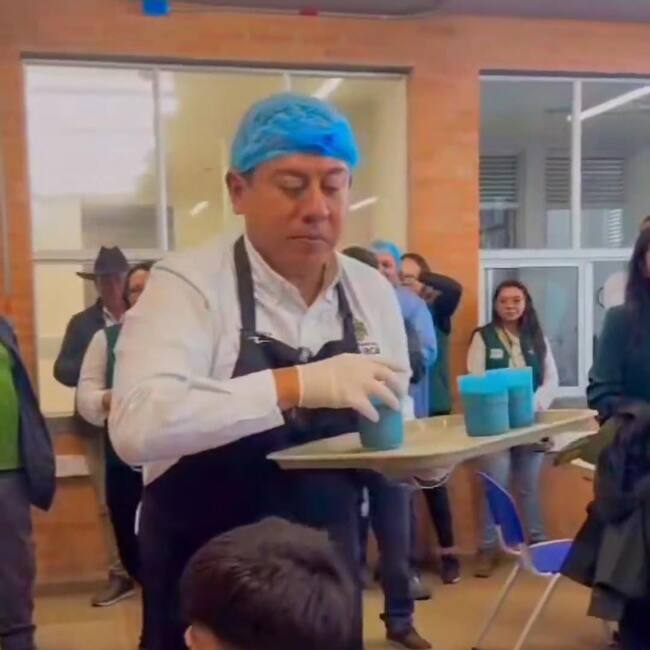 Aprovechando el inicio del año escolar el gobernador, Carlos Amaya se fue para la vereda El Bosque del municipio de Úmbita se puso el delantal, el gorro desechable y bandeja en mano empezó a servirle los alimentos a los niños.