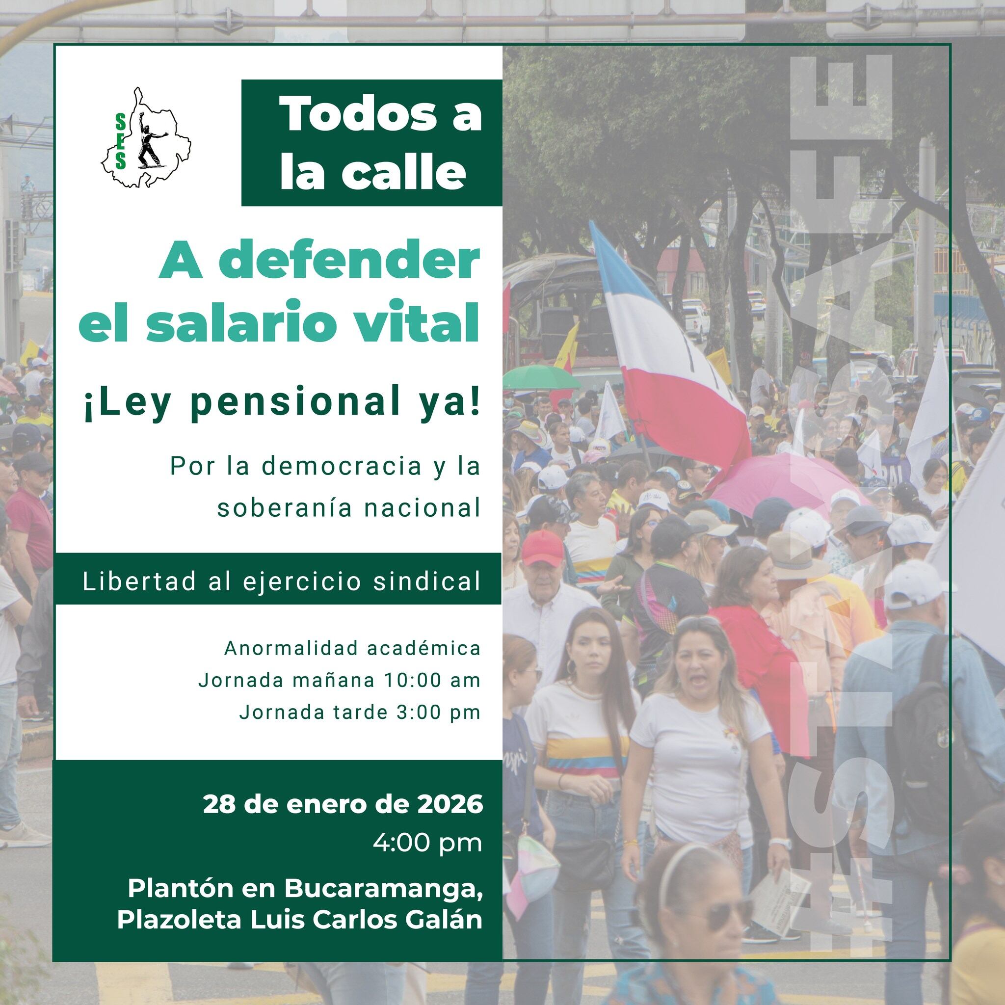 Docentes y sectores sindicales de Santander saldrán a las calles este 28 de enero de 2026 en Bucaramanga para participar en una jornada de movilización en apoyo al salario vital y la ley pensional, además de pedir mejores garantías para el ejercicio sindical.