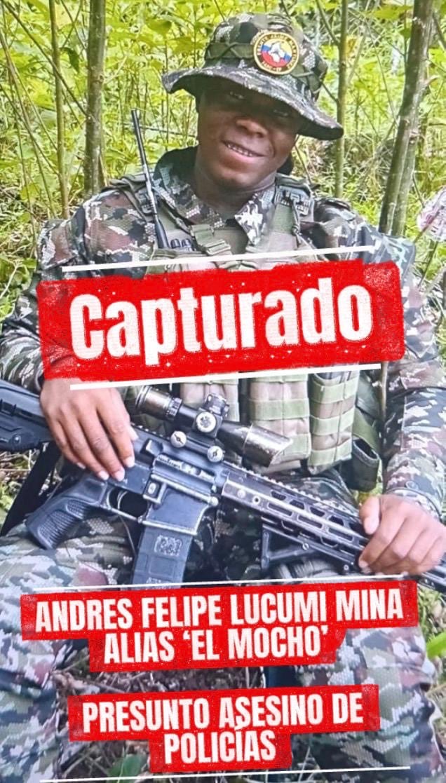 El Ministro de Defensa Pedro Sánchez confirmó la captura de Andrés Felipe Lucumi alias ‘El Mocho’ de las disidencias de las Farc, quien sería el responsable del homicidio del patrullero de la Policía Nacional Carlos Andrés Pineda Castro y donde también dejó herido a su hijo de 10 meses de edad, en el municipio de Jamundí en el Valle del Cauca.